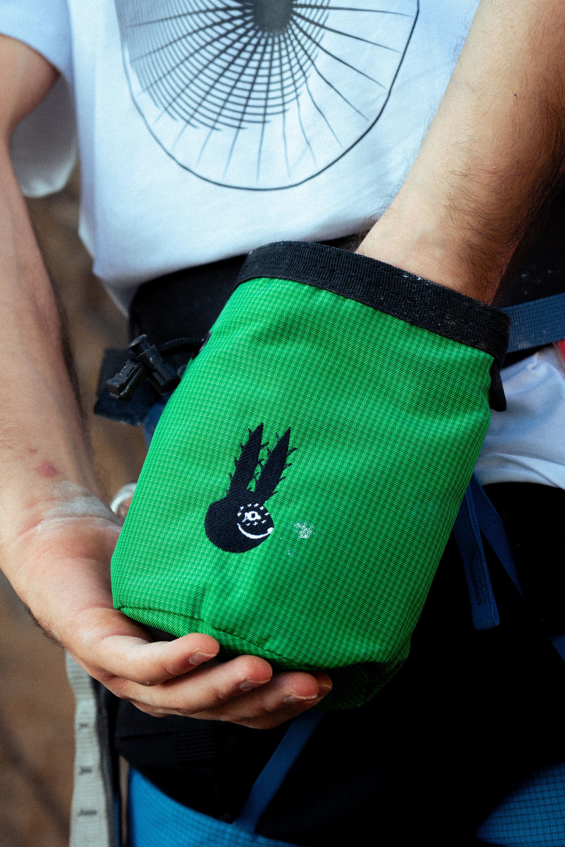 La magnesiera Greenline es tu compañera de confianza para conquistar cualquier pared. Fabricada con resistente tela ripstop, esta pieza artesanal está diseñada para durar y soportar el rigor de la escalada en roca.