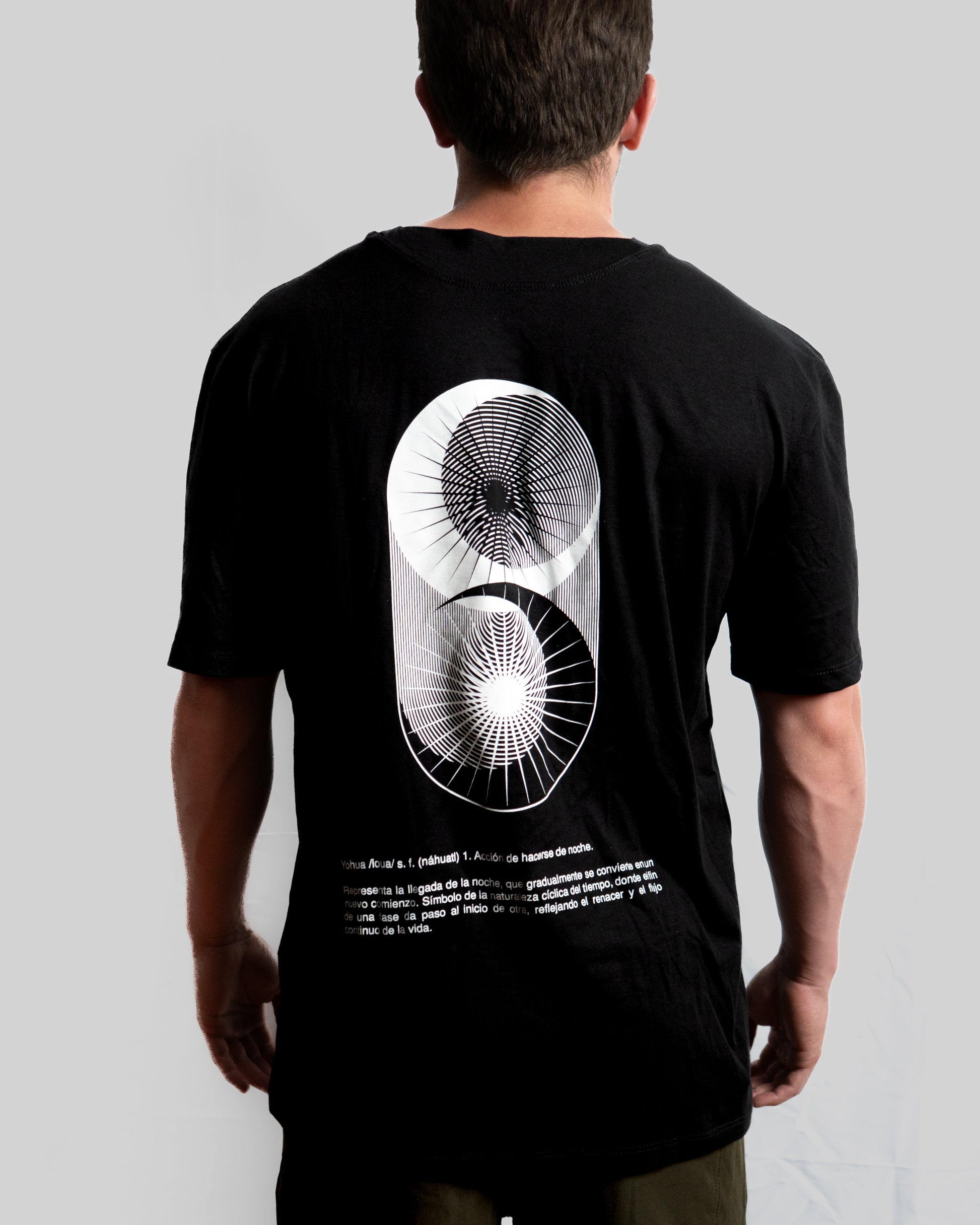 Este dúo, que se contrapone como el Ying Yang, se compone de una playera negra que simboliza la llegada de la noche, y una playera blanca que representa la claridad de un nuevo comienzo. El diseño en cada una se complementa con la otra, reflejando que la oscuridad y la luz son dos caras de la misma moneda.